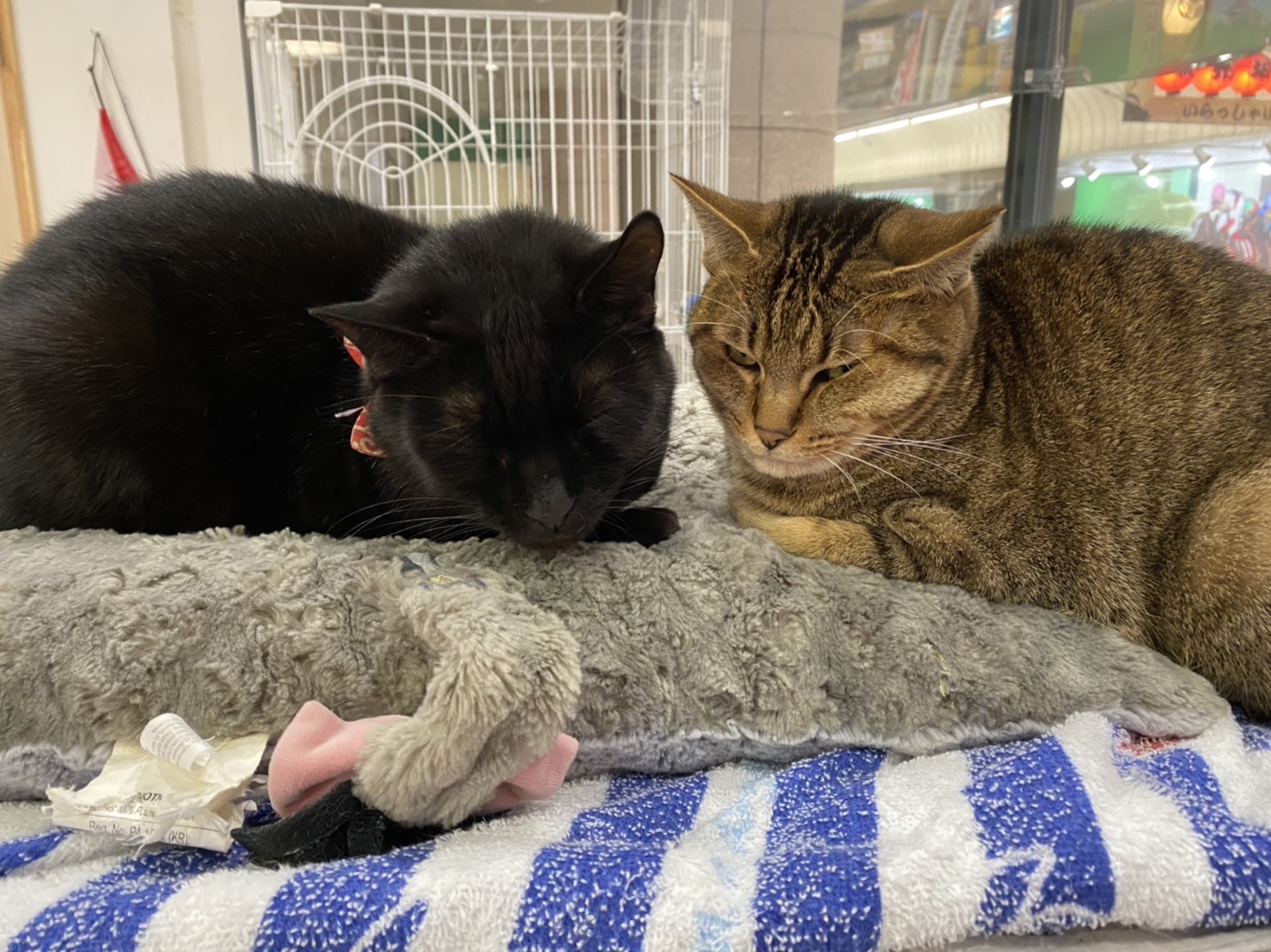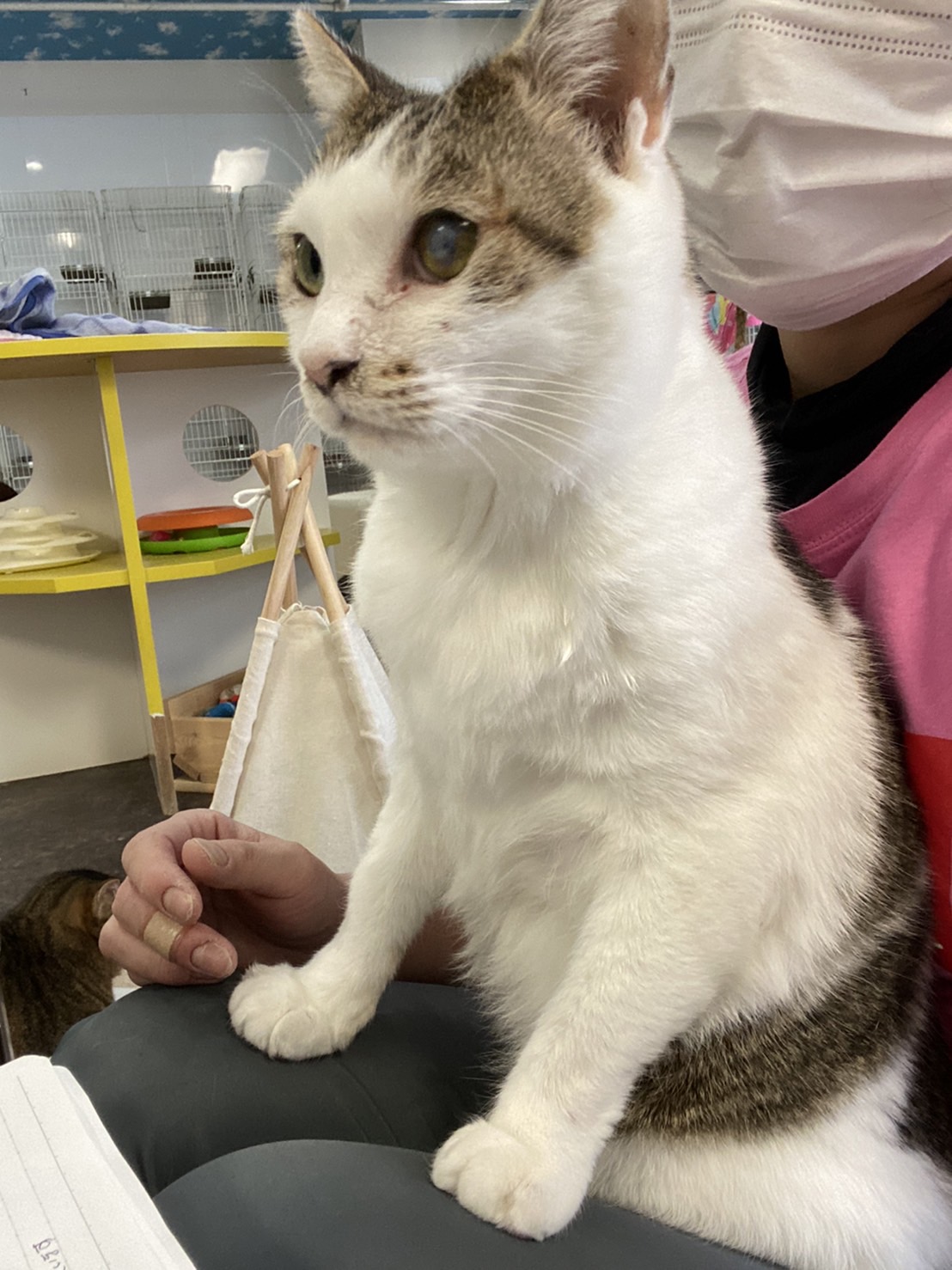 こんにちは(^^♪ 先週から一層寒さが厳しくなってきました( ;∀;) 和歌山県内のコロナ感染者数も、相変わらず横ばい状態ですね 、、、(/_;) これから、どんどん乾燥する季節になります( ;∀;) 手洗いなどの感染対策を取っていただき、皆様どうかお気を付けください! 先日、2月3日は節分でしたね♪ 皆様、豆まきをしたり、恵方巻は食べましたか~?? ワンダブルでは、スタッフが子供さんたちと一緒作ってきてくれた鬼の被り物で、コスプレ大会をしました~(^^♪♪ ![]() ワンダブルの看板犬、マルちゃん♪ ![]() ホープ君♪ 真っ黒の男前フェイスに、赤い被り物がとても似合っています( *´艸`) ![]() ママンさん♪ ワンダブルに来てからの初めてのイベントです♪ とても優しいお顔のママンさん(^^♪ 優しいママ鬼さんになりました~( *´艸`) ![]() 舌ペロのサービスまでしてくれました!(笑) ![]() 美人ビビアンも、おすまししてくれました♪♪ ビビも真っ黒ボディに赤い被り物が似合っています~( *´艸`) ![]() 出ましたボブ爺ー!(笑) ボブ爺は青鬼さんに♪ 毛が増えてよかったね( ;∀;)(笑) ![]() 老犬ホームのクリちゃんも♪ お利口さんにお顔をキメてくれました( *´艸`) 黒い子は赤がよく似合いますね♪♪ ![]() このブログでもお馴染み、絶賛ダイエット中のロッキー!(笑) 青鬼さんになりました♪ いつもは動きが激しすぎて、ブレブレな写真しか撮れないのですが、綺麗に写っている綺麗なショットです!(笑) なんか、若干体がスッキリしたような…? ![]() 久しぶりの登場♪ 老犬ホームのジャズくん(^^♪ お利口さんに写真を撮らせてくれました( *´艸`) ![]() こちらも久しぶりの登場♪ 同じく老犬ホームのパールさん♪ お目目は見えていませんが、しっかりカメラ目線を決めてくれました( *´艸`) ![]() この被り物を作ってきてくれたスタッフのお家のワンコ、キャリックさん♪ 面会に来られる飼い主様や常連のお客様にはお馴染みの、青い車椅子のワンコさんです(^^)/ 同伴出勤で、スタッフと一緒に出勤しています♪ ちなみに右後ろ側に移っているのは、佐藤君です(^^♪ ![]() 最近抱っこ大好きなコロさん(^^♪ いつも写真写り抜群なコロさんですが、今回は珍しくテンション低めです、、、(笑) 嫌だったんだね、、、( ;∀;)ごめんね、、、( ;∀;) ![]() いつもハイテンションなピンちゃん! ピンちゃんが被ると、なぜかカツラみたいになってしまいました、、、( ;∀;)(笑) ![]() こちらもお馴染み、姫ちゃん♪ 最近、ボランティアさんに 「黒電話みたいな頭やなあ、、、(笑)」 と言われています、、、(笑) 寝転んでリラックス中の所を失礼して、被らせてもらいました! ![]() 二重アゴになって、不機嫌なお顔に~( ;∀;)(笑) 角が見えなくなって、赤いモジャモジャが乗っているだけみたいになってしまいました( ;∀;)(笑) ![]() ハッピーキャットのゲンちゃんも♪ 賢く乗せさせてくれました( *´艸`) ![]() このブログでもお馴染み、ララ母さんです(^^♪ いつもは美人なお顔です写真に写ってくれますが、今日はご機嫌斜めに、、、、( ;∀;) 失礼しました~( ;∀;)(笑) こんな感じで、みんなで節分を楽しみました♪♪ 次はひな祭りですね~(^^♪ 皆さん、楽しみにしておいてくださいね( *´艸`) ![]() この毛布のかたまり、、、、、 中心に見えるのは、、、、、 ![]() もしかしてこの頭は、、、、、、、 ![]() 、、、、、、、、、(笑) ![]() やっぱりボブ爺でした~!!(笑) 寒すぎて、ホットカーペットと3枚の毛布から出られないボブ爺なのでした( ;∀;)(笑) ![]() スタッフの肩たたきをしてくれているコロさん♪ 日々の疲れを労ってくれています、、、(笑) ![]() ![]() お膝大好き、ソラくん(^^♪ 子猫の時の風邪の後遺症で左目が白く濁ってしまっていますが、とっても元気な男の子です( *´艸`) ハッピーキャットに来た当初は手のひらに乗るサイズだったのですが、立派な男の子になりました( ;∀;) ![]() ![]() こちらは初めての登場、長毛の黒猫グレイスさんです(^^♪ 胸の白い毛がチャームポイントです♪ とっても美人な黒猫さんです( *´艸`) ![]() お久しぶりの太郎ちゃん♪ なんだか面白い格好で横たわっています、、、、、、、 ![]() あ、お客様のナデナデ待ちでした~( *´艸`)(笑) ![]() ハッピーキャットの木の妖精さん(笑) ゴエモンさんです( *´艸`) ぜひ皆さんも妖精探しに遊びにきてくださいね~♪(笑) ![]() 秘密のお話中だったキジ猫コンビ、ラナさん(左)とキッスさん(右)( *´艸`) ラナちゃんは、事故で左足が欠損していますが、とっても元気な女の子です♪ ![]() 邪魔してごめんね( *´艸`)(笑) ![]() この2つ並んだ可愛いお尻は、、、、、、、 ![]() うわーー!(笑) 厳ついお顔ーー( ;∀;)(笑) こう見えて仲良しの、葉月(左)とゴン太(右)です( *´艸`) この2人、なぜか揃うとこんなお顔になってしまうんです、、、、 ![]() 怖ー(笑) ![]() 怖ーー!!(笑) めっちゃメンチ切っています、、、、( ;∀;)(笑) こんなキャラの濃いワンコやニャンコがたくさんいます( *´艸`)(笑) 和歌山県も、まん延防止が発令されまし