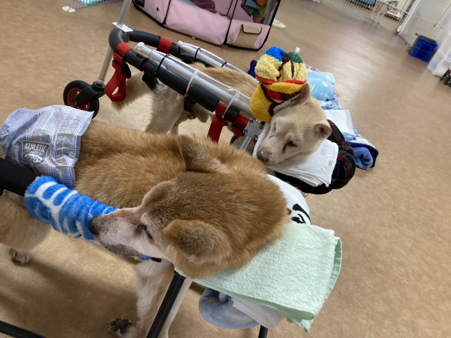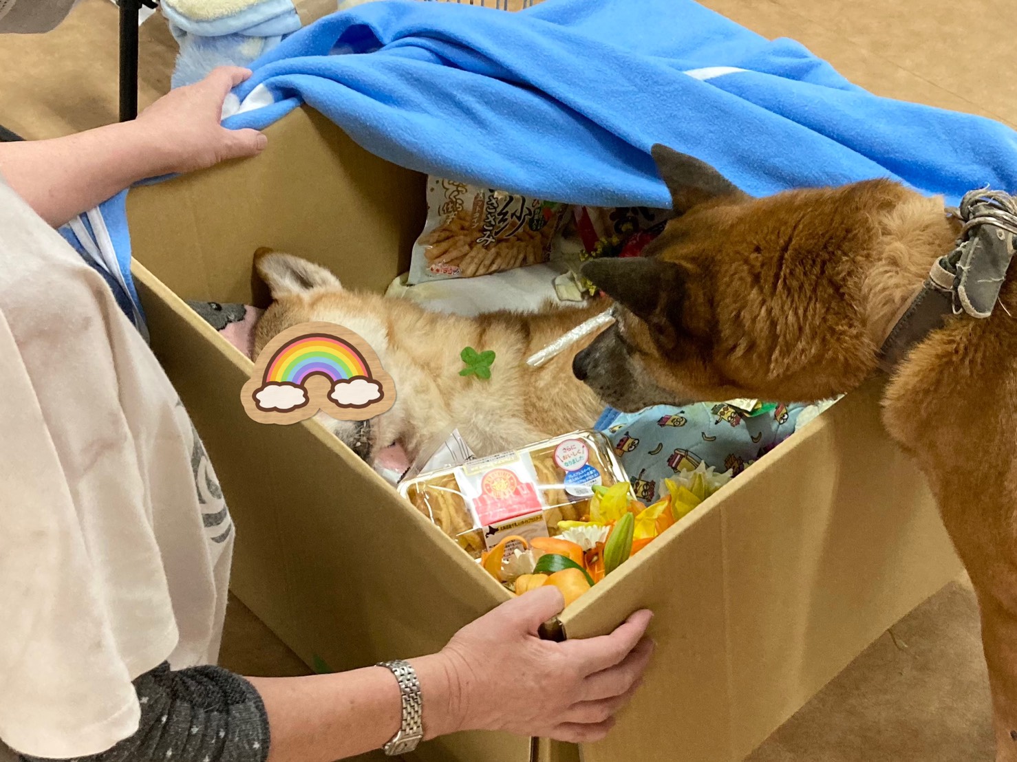 こんにちは(^^♪ 今日から西日本では天気が悪くなるようですね・・・・(*_*; ワンダブルがある和歌山市内でも、雨が降っています・・・(T_T) 残念ながら、ワンダブルのワンコ達も室内で過ごします・・・(T_T) ![]() ![]() まずは、ワンダブルの隠れた人気者、美犬のビビアンさん♪♪ 実は最近、ビビアンさんの妹分が仲間入りしました♪♪ ![]() ![]() 白ワンコさんの晴日さんです~( *´艸`) ブログやインスタでもちょこちょこ登場していたのですが、ビビりさん同士、着々と仲を深めていっていたようです(^^♪ ![]() ビビアン姉さんが大好きな晴日( *´艸`) 心なしか、最近ビビアンもお姉さんのお顔になってきました(^^♪ ![]() この日は、二人でリードの練習♪♪ ビビアン姉さんはリードが付いていても大丈夫ですが、晴日さんはまだまだリードが少し苦手・・・ お姉さんの背中を追いかけながら、リードの特訓です(*´▽`*) これからの、このビビリガールズ達の成長にもご注目です( *´艸`)♪ 先週に引き続き、今週もワンコ達のシャンプータイム♪ 今回のワンコは・・・・・・ ![]() じゃ~ん♪ こちらも隠れた人気者、ひろしさんです( *´艸`) ![]() この写真は、シャンプー~タオルドライまで終わったところ(^^♪ これからドライヤーが始まります! そしてドライヤーが終わり・・・・・ ![]() こんなに毛が抜けました~!!どっさり!! (ドライヤー後の疲れたお顔・・・ひろしお疲れ様!) ![]() ![]() ギュッとひとかたまりにしてもこの毛量! 暑かった冬毛も無くなり、サッパリ♪ひろしもスッキリしたお顔でした( *´艸`) 生まれ変わったNEWひろし(夏ver.)に、ぜひ会いに来てくださいね~♪♪ 続いては、このブログの人気コーナー♪(笑) “ロッキー君のトレーニング&ダイエット大作戦!”コーナーです(^^♪ ![]() 今週も真剣に取り組むロッキー! すでに準備万端です! 今週も引き続き“お手”の訓練♪ ![]() 真剣にスタッフさんの目を見つめるロッキー・・・ アイコンタクトもバッチリです! ![]() おっと!気合が入りすぎて、スタッフさんに飛びついてしましました・・・・(笑) ![]() 気を取り直して・・・・・ ![]() お手♪ 出来ました~♪♪復習もしっかりできています( *´艸`) ![]() ご褒美もしっかりもらって・・・♪ スタッフさんにも褒めてもらって・・・・♪ ![]() すると突然なにかスイッチが入ってしまい、暴走しだしたロッキーさん・・・・。 ![]() ![]() 貰ったオヤツが美味しすぎたのか・・・・・ ![]() ・・・・・・。 ![]() いきなりダイエットに励むロッキーさんでした・・・・・(*_*;笑 ![]() 現在レギュラー出演中(笑)のハッピーキャットのボス、サーラ&サーラの愛人(笑)アルちゃん♪ ![]() サーラにアゴ置きにされても(笑) ![]() ![]() 健気に寄り添い続けるアルちゃん・・・・ ![]() たまに嫌気がさしたのか、大あくびをかましているところも目撃しますが・・・・・(笑) ![]() 仲良しな二人なんです・・・( *´艸`) そんなサーラさん、珍しく一人で寝ているかと思えば・・・・・・ ![]() カゴベッドにギチギチにはまっていましたー!(笑) ![]() どうしてもこのベッドで寝たかったようです・・・(笑) ハッピーキャットのボスとしての日々の仕事は大変なようです・・・(;^ω^) ゆっくり休んでね(;^ω^) ![]() ハッピーキャットの猫神様m(__)m 太郎ちゃん♪ ![]() 本日も下界を見下ろされています・・・・m(__)m(笑) 猫神様太郎ちゃんを発見できた人は、いいことが起こるかも! ぜひ見つけてみてくださいね~♪♪ そして、今回は悲しいご報告がたくさんあります・・・・・ ![]() 最近のブログでも、ワンダブル戦隊シバーズのリーダーとして登場して、ワンダブルを盛り上げてくれていた佐藤くんが、5月6日に亡くなりました・・・・ ここしばらくはとても調子も良く、亡くなる前日もいつも通り栄養の流動食も沢山飲んでゆったりと過ごしていました・・・ 亡くなる朝もいつも通りでしたが、10時頃に容態が急変し、ボランティアさんとスタッフに見守られながらそのまま眠るように息を引き取りました。 ![]() ホテルのワンコさんの飼い主さんがお供えしてくださった四葉のクローバーも一緒に・・・ ![]() 沢山のお花やお供えに囲まれました(^^♪ ワンダブルの大御所として、帝王コゴロウ・女帝サクラが亡くなり、そして子分ボビーがワンダブルを卒業してから、長らくワンダブルのワンコ達を陰ながら支えてくれていた佐藤くん・・・ 元々は、ワンダブルのカミカミワンコさんリードと並んでツートップカミカミワンコ(笑)だった佐藤くん(;^ω^) 年を取ってからは、赤ちゃんのようなお顔になっていました(^^♪ ![]() ![]() ![]() ![]() 若かりし頃の佐藤くん(^^♪ この頃は、バリバリのワンダブルの裏番でした(;^ω^)(笑) ![]() ![]() ![]() ワンダブルの次期リーダーロッキーも、長らく一緒に過ごした佐藤くんとお別れです・・・・ ![]() ![]() ![]() 新女帝・姫ちゃんも・・・・・・ ![]() ![]() ![]() ![]() カミカミコンビの相方リードとも最後のお別れです・・・・・・ その後、無事に荼毘に付した佐藤くん