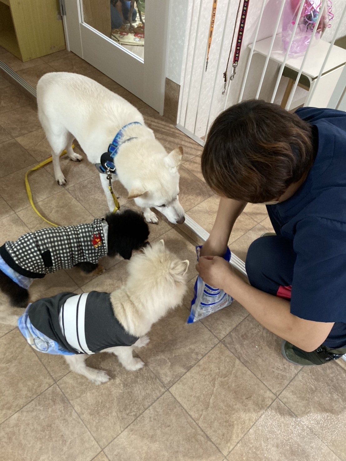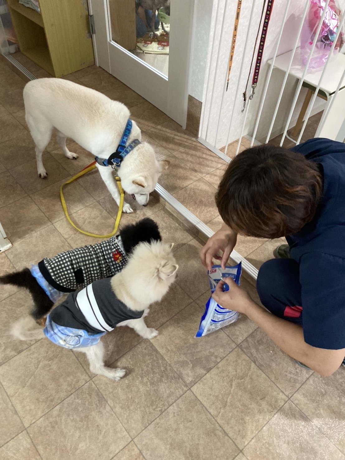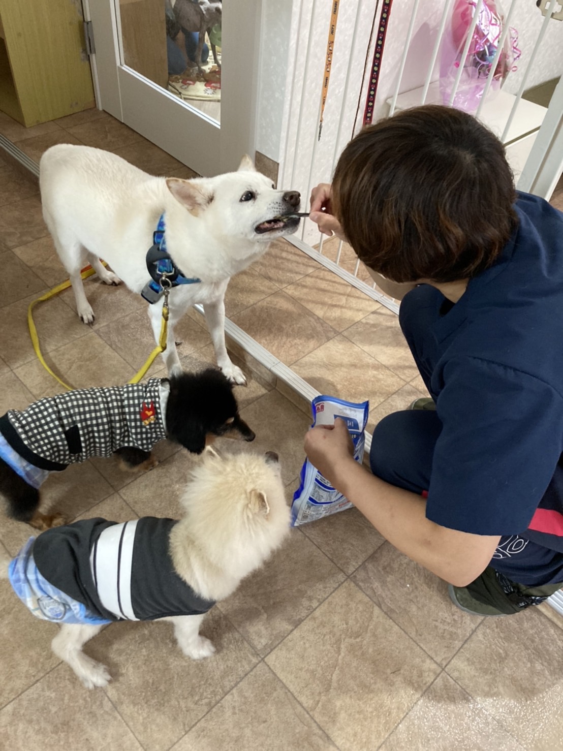 こんにちは(^^♪ 皆さまご無沙汰しております(*_*; 久しぶりの更新となってしまいました(;^ω^) 11月に入り、一気に寒くなってきましたね!(;^ω^) 朝晩の冷え込みは特に厳しくなってきました( ;∀;) 今年の冬はコロナとインフルエンザの同時流行が心配されていますね・・・ 手洗い・うがい等の感染予防をしっかり取っていただき、皆さまどうか体調などにはくれぐれもお気を付けください! さて、ずいぶんと久しぶりになってしまいましたが、今週もワンコ・ニャンコ達の様子をご報告していきます♪ ![]() まずは、ペットホテルご利用中のホープ君( *´艸`) 引っ越しでバタバタとしていたので、しばらくトリミングを待ってもらっていたのですが・・・(*_*; 先日元スタッフのトリマーさんが来てくれて、やっとトリミングをしてもらいました! 元々男前なホープ君ですが、キレイサッパリ☆さらに男前になりました~( *´艸`) ちょっぴりおじいさんのお顔になってきましたが、まだまだ元気♪ ご家族さまからとっても大事にされているホープ君です( *´艸`) ![]() お次のトリミング組は、ワンダブルの看板犬マルちゃん! マルちゃんもしばらくトリミングを待ってもらっていました・・・( ;∀;) そんなマルちゃんのトリミング後のafter写真がこちら♪♪ ![]() 全くの別犬さん!(笑) トリミング前の面影ゼロ(*´▽`*) 超絶美女に生まれ変わりました~♪♪ 写真ではお淑やかにキメていますが、元気いっぱいの女の子♪ とっても人懐っこい子なんです( *´艸`) ぜひ、こんなマルちゃんに会いに来てくださいね~(^^♪ ![]() そしてパール爺ちゃんも♪ リッチな泡風呂を堪能中です~( *´艸`) ![]() ![]() この日はシャンプーラッシュ!☆ 老犬ホームのジャズ爺ちゃんもフワフワの泡風呂へ♪ ![]() ふわふわサラサラヘアーになりました~( *´艸`) ![]() お次はワンダブルっ子の美犬ピンちゃん♪ シャンプー中もお淑やかです・・・・( *´艸`) ![]() 大吉にお風呂をのぞき見されながらシャワー・・・(笑) ![]() シャンプー台の上でもお淑やかです( *´艸`) とってもお利口なみんなのママ(^^♪ ピンちゃんでした♪ ![]() ![]() お次はペットホテルのお客様♪ 可愛い親子ワンコさんです(*´▽`*) 1枚目がお母さんのモコちゃん♪ 2枚目が娘ちゃんのテンちゃんです♪ モコちゃんテンちゃん、今回2回目のホテルご利用です♪ ありがとうございます(*´▽`*) ![]() ここからはワンダブルの保護っ子たちのご紹介♪ 前回のブログでも登場したボブ爺! その日の調子によって、自力で立てる日もあるんです♪ ![]() ![]() ![]() ![]() ご飯も自分でモリモリ食べられます♪ ![]() たまに洋梨の妖精になってみたり♪ (スタッフに遊ばれているだけ(笑)) ワンダブル最長老☆18歳のボブ爺、まだまだ元気いっぱいです☆ 元気に長生きしてね♪ ![]() スタッフルームから覗くと、ワンダブルっ子三人組、(左から)ピン・いっくん・晴日がこちらを見ていました(*´▽`*)(笑) ![]() ![]() 別の日には、またまたこの三人組がフォーメーションを少し変えて並んでいました( *´艸`)(笑) 子犬だった晴日も、日に日にたくましい女子になっていっています・・・(笑) 心なしか三匹とも顔が似ているような・・・・(笑) ![]() ワンコ達のオヤツタイム♪ ひろし・ジャズ・コロリン(*´▽`*) ![]() お魚嫌いだったひろし・・・ 最近は年を取ってきて、お魚の美味しさに気付いたのか煮干しも食べるようになってきました!(笑) ![]() あんなにお魚に興味が無かったひろしが・・・煮干しに食いついています!(笑) ひろしの新たな発見でした( *´艸`)(笑) ![]() ![]() そして!嬉しいお知らせです♪ このブログでも何度も登場していた、ナナちゃん(^^♪ ついに里親様が決まりました! まだまだ元気いっぱいなナナさん☆とっても優しい里親様に迎えていただきました( *´艸`) 阪神ファンの旦那様とのこと・・・ イエローのハーネスに、真っ黒のナナさんで、しっかりタイガースカラーになっていましたよ~(*´▽`*)(笑) これからの残りの犬生、優しい家族さん達と幸せに過ごしてね♪ またいつでも遊びに来てね♪ 現在、保護猫カフェのプレオープン中です! まだまだ完全体ではなく、スタッフも研修中で大々的にはお知らせしていないのですが、お近くの方はぜひ遊びに来てくださいね♪ では、今週も皆様から頂戴いたしました支援物資のご報告をさせていただきますm(__)m 沢山のご支援、本当にありがとうございます! スタッフ一同、心よりお礼申し上げますm(__)m ![]() ![]() ![]() ![]() ![]() ![]() ![]() ![]() ![]() ![]() ![]() ![]() ![]() ![]() ![]() ![]() ![]() ![]() ![]() ![]() ![]() ![]() ![]() ![]() ![]() ![]() ![]() ![]() ![]() ![]() ![]() ![]() ![]() ![]() ![]() ![]() ![]() ![]() ![]() ![]() ![]() ![]() ![]() 沢山のご支援、本当にありがとうございます。 当法人は皆様からのご支援・ご協力で運営されております。 頂戴いたしました支援物資は、大切に使わせていただいております。 アマゾンほしいものリストもどうぞよろしくお願いいたします。 ※現在キャットフードが大変不足しております! 約40匹のニャン
